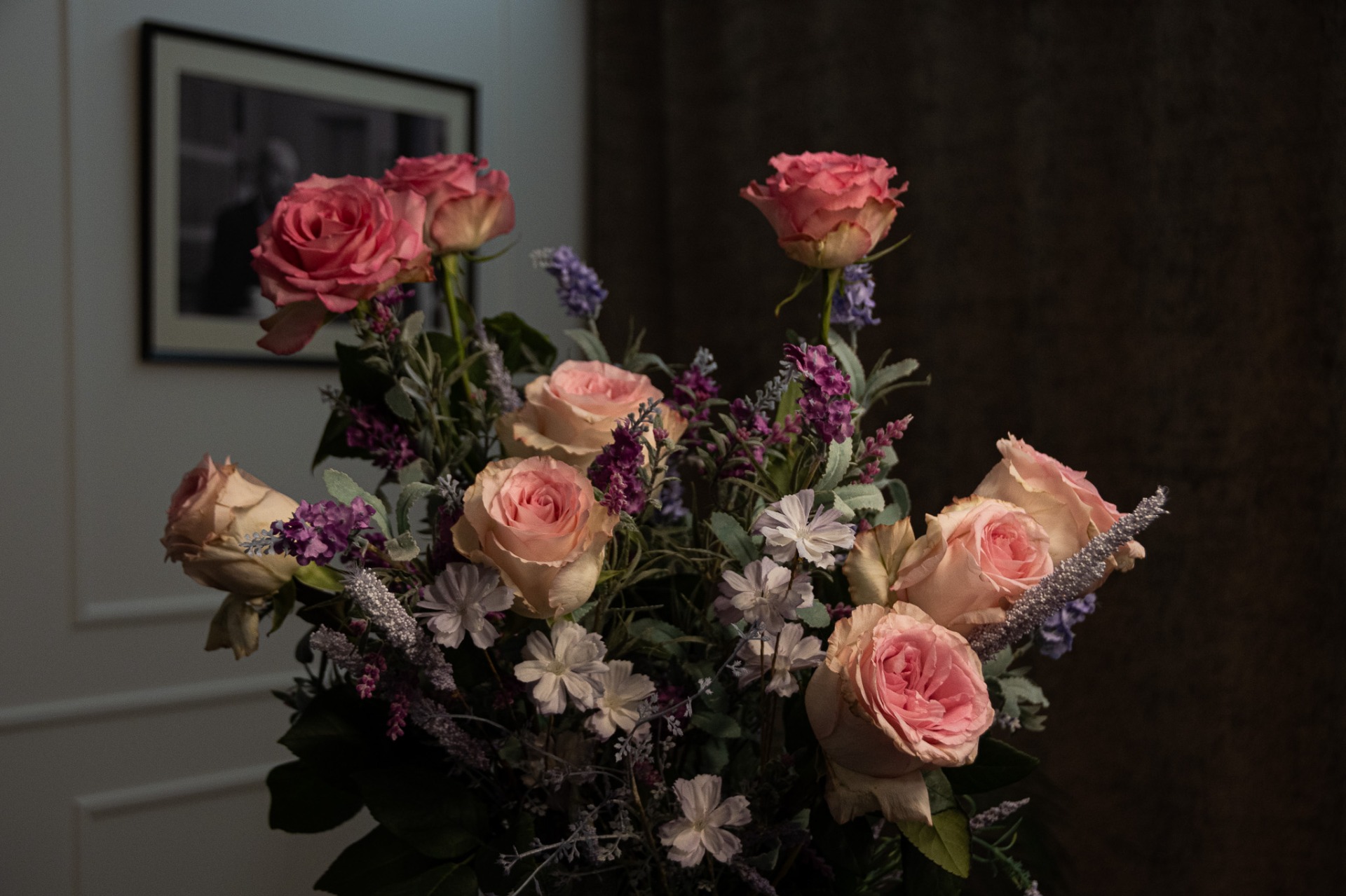 Perekond kohal. Laual tort, küünlad, kaunid õied. Kui valdavalt oli suguvõsa teadmatuses sündmusest, siis mõned leidlikud olid suutnud saada jälile ning läkitada tervitused vaasi.