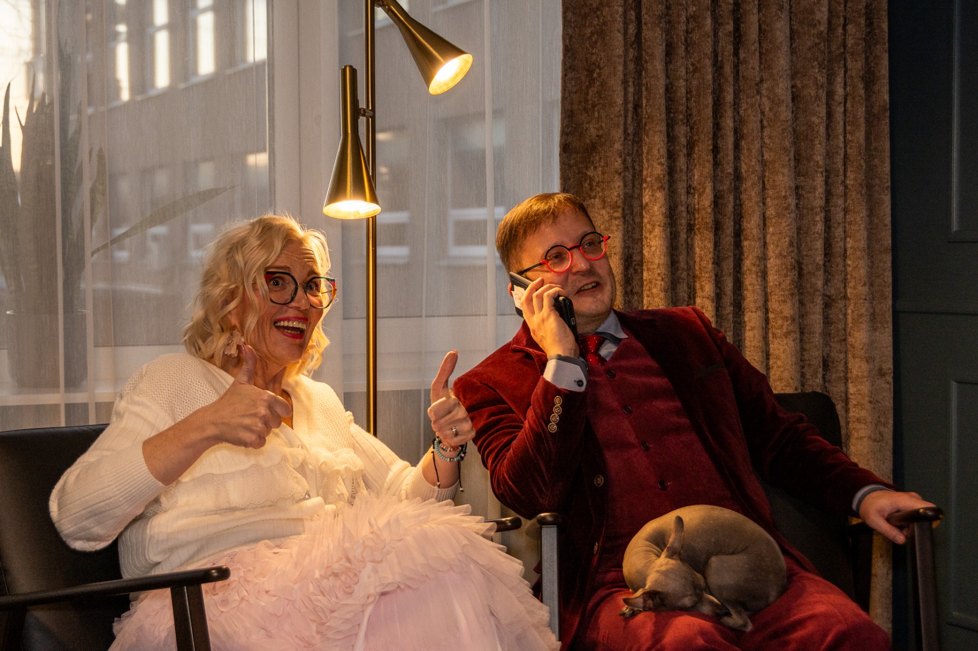 Tulles nüüd värske abielupaari juurde. Hm! Nii ägedaid naisi nagu Annely - neid on vähe. Naine nagu "püss" oleks vist päris pädev võrdlus, kuigi võib olla pisut seksistlik, aga mitte selle väljendi traditsionaalses mõttes. Ma ei tea kust temal see energia tuleb, aga ta on nagu Bison'i 2-faasiline liim, mis hoiab koos kõikvõimaliku. Tema laetus ei seisne mitte ainult koloriitses outfit-is, see on tema olemuses. Ülimalt hea "materjal" (vabandust) lavastuslikuks fotograafiaks - pääsedes "buduaari". Sama unikaalne on mees naiste kõrval, kes kogu selle sõgedusega kaasa tuleb. Temperament teistsugune, aga oskus protsessi nautida samaväärne. Annely abikaasa Mario on mees, kes tunneb end ülihästi vestiga ülikonnas ja kes mõnusa stoilise rahuga laseb oma abikaasal särada. Rariteet!